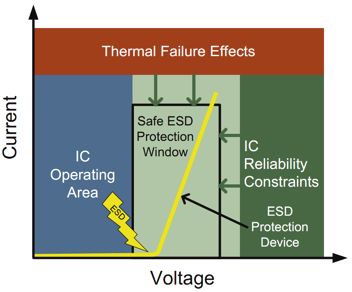 另外,先進的系統級芯片(SoC)設計都是采用幾何尺寸很小的工藝制造的。為了優(yōu)化功能和芯片尺寸,IC設計人員一直在不斷減少其設計的功能的最小尺寸。IC尺寸的縮小導致器件更容易受到ESD電壓的損害。