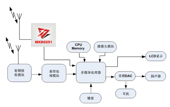 圖1:基于MXD0251的CMMB移動數(shù)字電視終端系統(tǒng)架構(gòu)。