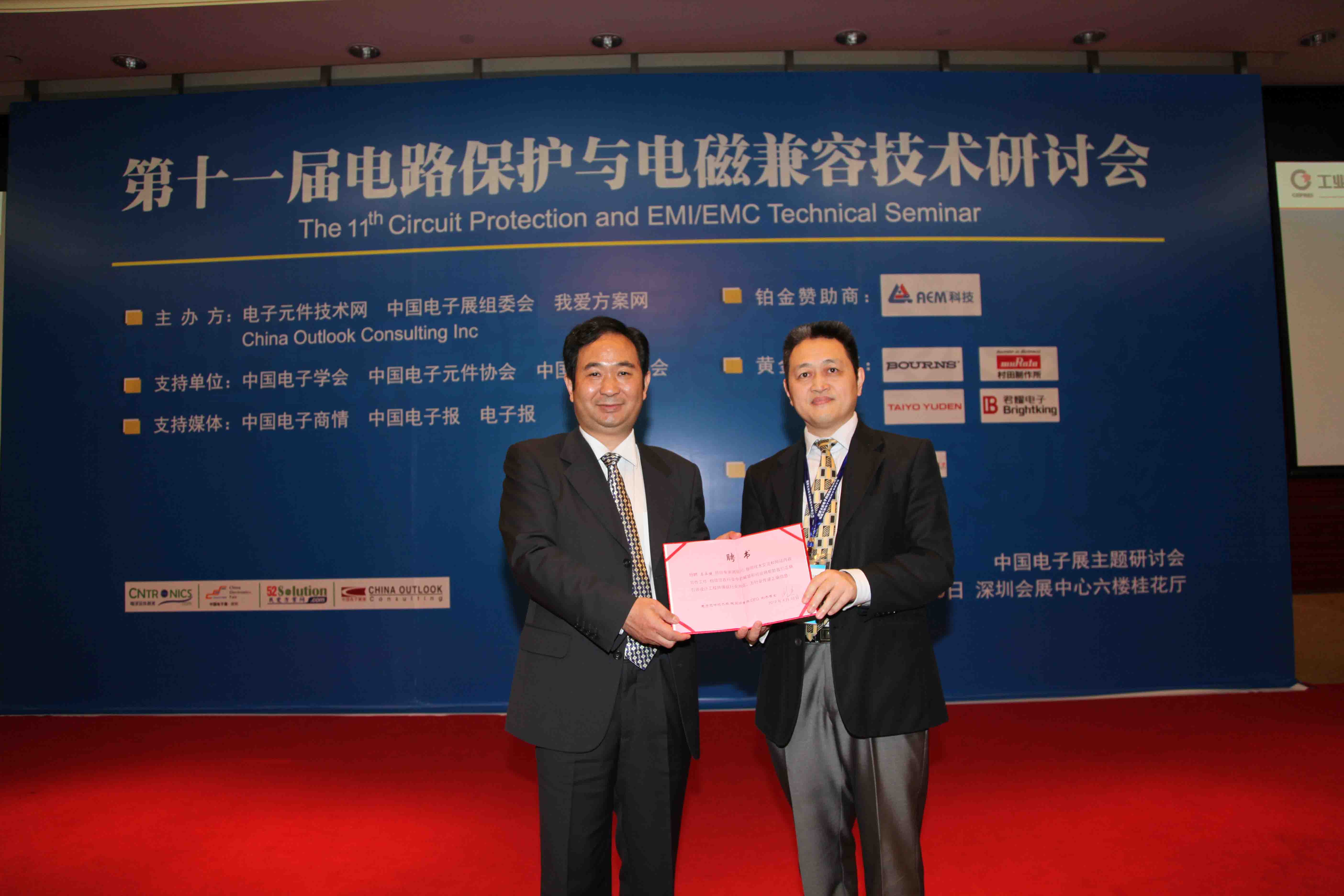 由電子元件技術(shù)網(wǎng)(www.crcgulf.com)攜手中國電子展、我愛方案網(wǎng)(www.52solution.com)和China outlook consulting主辦的第十一屆新電路保護(hù)與電磁兼容技術(shù)研討會于4月10日在深圳會展中心六樓水仙廳勝利召開!