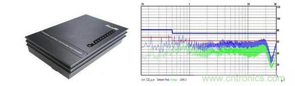 上圖為MORNSUN電源LH15-10B05的電源應用到某品牌產品上面后,整機測試傳導騷擾結果,此結果無法符合EN55022/CISPR22的CLASS B要求,甚至連CLASS A都無法滿足要求,更不用說設計余量。