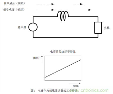 因此,如果將電感串聯(lián)插入噪聲通道,頻率較低的信號成分將容易通過,頻率較高的噪聲成分將不易通過。