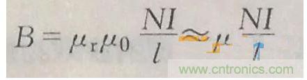 這個(gè)是做變壓器最基本的公式根據(jù),但是表示的不對(duì),應(yīng)該表示為B=(磁導(dǎo)率/磁路)*(NI);