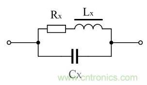 線圈有分布電容。因此,電感線圈就相當(dāng)于一個(gè)電感與一個(gè)分布電容并聯(lián)。如圖1所示。圖1中,LX為電感線圈的等效電感(理想電 感),RX為線圈的等效電阻,CX為電感的分布電容。