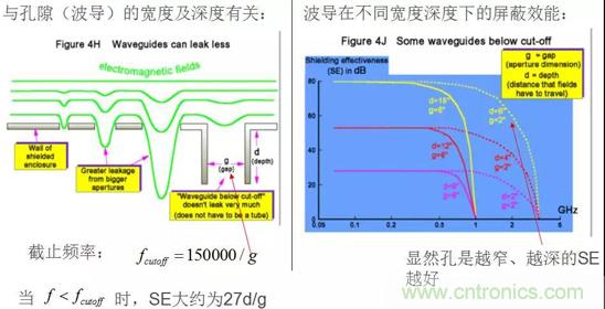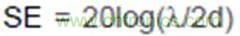 在一個完美的屏蔽殼體上開一個洞,相當于構(gòu)成一個半波共振縫隙天線,屏蔽效能SE與孔的最大尺寸d、電磁波波長λ關(guān)系如下: