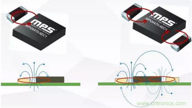 如圖7所示,對稱電容設計能明顯抵消磁場,如果電容集成到芯片內(nèi)部的話對傳導和輻射的高頻干擾都能起到極大的抑制作用,MPS的MPQ4491M就是一款高度集成的車載充電芯片方案,內(nèi)部集成了電容,具有良好的EMI性能。