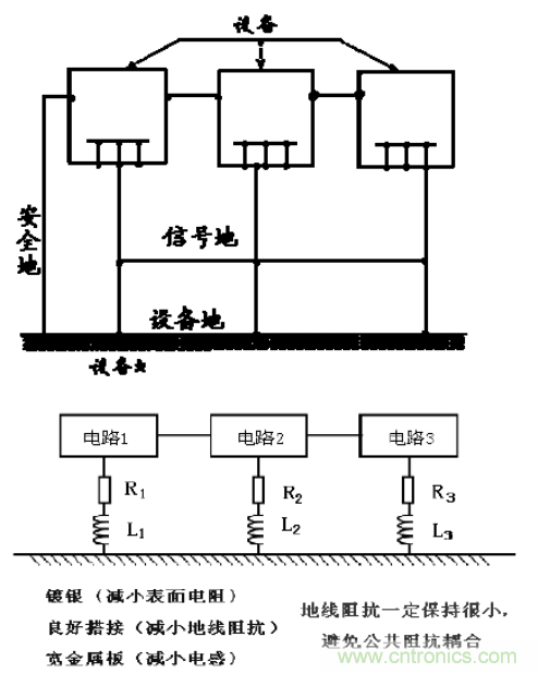 (3)噪聲和干擾抑制:對內(nèi)部噪聲和外部干擾的控制需要設(shè)備和系統(tǒng)上的許多點與地相連,從而為干擾信號提供最低阻抗的通道。