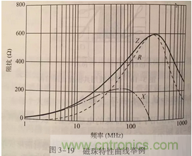 鐵氧體材料是鐵鎂合金或者鐵鎳合金,是一種立方晶格結(jié)構(gòu)的亞鐵磁性材料。這種材料具有很高的磁導(dǎo)率,可以使電感的線圈繞組之間在高頻高阻的情況下產(chǎn)生的電容最小。它的制造工藝和機(jī)械性能與陶瓷相似,顏色為灰黑色。對(duì)于抑制電磁干擾用的鐵氧體,最重要的性能參數(shù)為磁導(dǎo)率和飽和磁通密度。磁導(dǎo)率可以表示為復(fù)數(shù),實(shí)數(shù)部分構(gòu)成電感,虛數(shù)部分代表損耗,隨著頻率的增加而增加。因此,磁珠的等效電路為由電感L和電阻R組成的串聯(lián)電路,其中X和R都是頻率的函數(shù),如下圖所示: