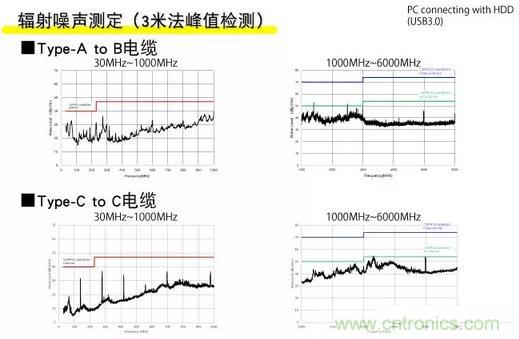 雖然這里使用TypeA-TypeB和TypeC-TypeC作為連接電纜,但兩種噪聲水平都低于不必要的輻射噪聲的調(diào)節(jié)值,并且沒(méi)有出現(xiàn)問(wèn)題。