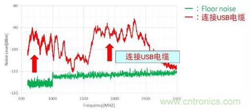通過(guò)連接USB電纜,導(dǎo)致噪聲水平增加了將近20dB。