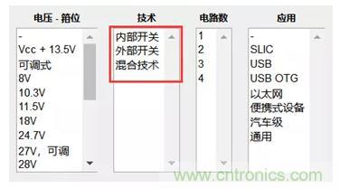 你可以訪問Digi-Key浪涌抑制IC,選擇相關(guān)的器件。Digi-Key網(wǎng)站提供豐富的參數(shù)選項(xiàng)供選擇,下圖中「外部開關(guān)」指的是器件外部需要另加開關(guān)(比如MOS管),而該芯片一般是起到控制作用。而「內(nèi)部開關(guān)」指的是保護(hù)電路的開關(guān)在芯片的內(nèi)部。