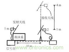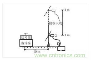 現將同一信號源分別放置在泡沫桌(如圖 6 所示)和木桌(如圖 7 所示)上,接收天線在距離信號源 10 m 處分別測量輻射騷擾。