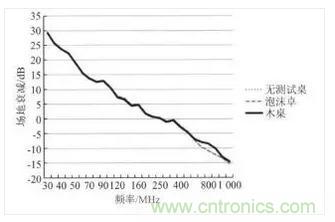 然后分別在采用泡沫桌和木桌情況下測得另兩組場地衰減數據,如圖 3 和圖 4 所示。
