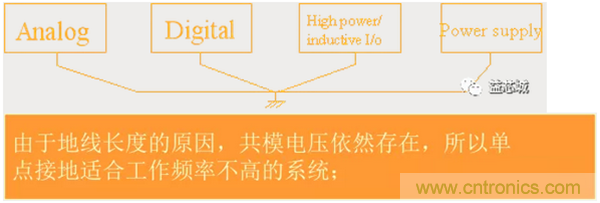 d、接地:同類電路單獨分布地,在單板上單點相連