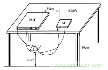 (2)被測設(shè)備置于金屬平面上,同金屬平面絕緣間隔10cm左右;接模擬負(fù)載或者暗室外端口的線纜應(yīng)該注意其同金屬平面的絕緣性;