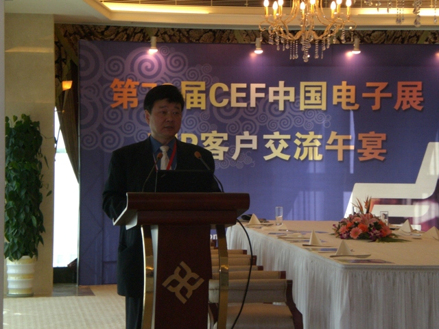 為答謝廣大電子廠商對中國電子展的長期支持,增進廠商了解和互信,中電會展于11月13日中午在永達大廈舉行交流午宴,邀請了包括美國福祿克、固緯電子、米尼帕電子、深圳帝光、武漢力源、威世、Analog Devices,中科泛華在內(nèi)上百家企業(yè)的中高層領(lǐng)導(dǎo),并邀請了高質(zhì)量的買家客戶前來參加,其中包括富士康科技、日立顯示、LG中國采購中心等;深圳市中電網(wǎng)絡(luò)技術(shù)有限公司CEO 劉杰博士也受邀參加并發(fā)表演講,同來賓分享了對電子行業(yè)的未來趨勢發(fā)展的認(rèn)識和看法。