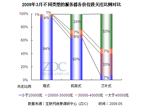 (圖)2009年3月不同類型的服務(wù)器各價位段關(guān)注比例對比