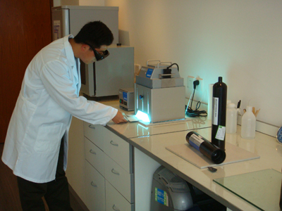 德路上海代表處首席代表 Torsten Uske說到:“我們利用自己的實驗室和各類設備能夠?qū)Υ蟛糠挚蛻魳悠分苯舆M行現(xiàn)場測試,這樣就不必把樣品發(fā)往德國。” Torsten Uske和他的團隊將在實驗室對客戶的應用進行諸如可行性研究。除了在揚聲器和手機領域的粘接外,和顯示器相關的粘接實驗也將在此進行。我們實驗室配備有各類設備,包括溫度測量儀、光強測量儀、固化燈、點膠設備以及涂膠用的絲網(wǎng)印刷模版。