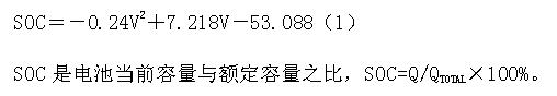 充電時電池的荷電狀態(tài)SOC(stateofcharge)可由下面的經(jīng)驗公式來得出,其中V是電池的端電壓。