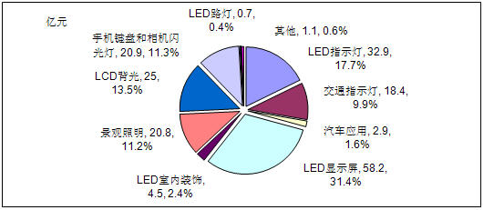- LED顯示屏、LED指示燈、LCD背光以、手機(jī)鍵盤和相機(jī)閃光燈四大應(yīng)用領(lǐng)域市場(chǎng)需求額占整體市場(chǎng)的73.9%