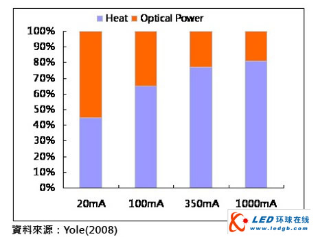 不同驅(qū)動電流下,LED光熱輸出比