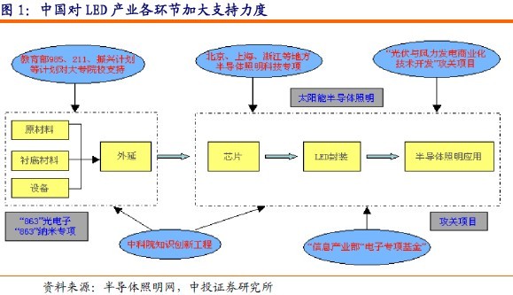 從2005年開始科技部批準(zhǔn)了大連、廈門、上海、南昌、深圳等五個(gè)半導(dǎo)體照明產(chǎn)業(yè)基地,之后在2007年和2008年相繼批準(zhǔn)石家莊、揚(yáng)州等兩個(gè)半導(dǎo)體照明產(chǎn)業(yè)基地,在政策、稅收和資金上給予長期支持。