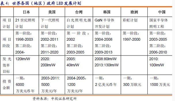 LED照明生產(chǎn)的效益顯而易見,世界各國都在政府的大力資助下加快推進(jìn)LED照明取代傳統(tǒng)照明的步伐,日本、美國、歐盟、韓國、中國臺灣和中國政府都制定了相應(yīng)的發(fā)展計(jì)劃?!?br />