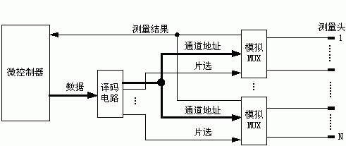 由圖2可見,若以VA作為測量的電壓量,理論上當VA=0時應為通路,VA>0時應為斷路,且VA的值隨兩測量通道之間的電阻值的不同而變化。但由于模擬多路開關(guān)本身有不可忽略的導通電阻RON,這樣,在測量通路形成后,若為通路,VA并不等于0,而是等于RON上的電壓降。由于測量的目的只是獲知通/斷路關(guān)系,沒有必要去測量VA的具體值,為此只需用電壓比較器比較VA是否大于RON上的電壓降即可。設(shè)置電壓比較器的閾值電壓等于RON上的電壓降,電壓比較器的輸出就是測量結(jié)果,該結(jié)果為可直接由微控制器讀取的數(shù)字量。