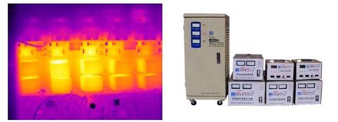 UPS電源模塊通過紅外熱成像儀測試客戶的UPS電源模塊,可以明顯看出溫度分布的不均勻,個別器件發(fā)熱偏高。蓄電池是UPS系統(tǒng)中的一個重要組成部分,它的優(yōu)劣直接關(guān)系到整個UPS系統(tǒng)的可靠程度,然而蓄電池卻又是整個UPS系統(tǒng)中平均無故障時間最短的一種器件,其發(fā)熱直接影響到電池乃至UPS系統(tǒng)的壽命。