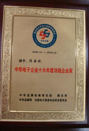 本次評選2009年度中國電子行業(yè)評選出的十大年度功勛企業(yè)家為:郭臺銘(鴻海)、張瑞敏(海爾)、張學(xué)斌(創(chuàng)維)、李鋒(北大青鳥)、李志強(qiáng)(紫光)、陳賢興(利爾達(dá))、陳國斌(合科泰)、黃榮添(杰科)、 陳潤生(中國華錄)、蘇華(歐德億泰)。