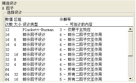 在篩選試驗(yàn)時(shí)不強(qiáng)調(diào)因素間的交互作用等影響,但給出了主要的影響因素,這時(shí)主要因素的數(shù)量不會(huì)太多,可以進(jìn)一步度量因素的主效應(yīng)和交互作用。