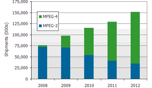 - 估計(jì)2010年附有MPEG-4 解碼器電視出貨量將超過(guò)MPEG-2