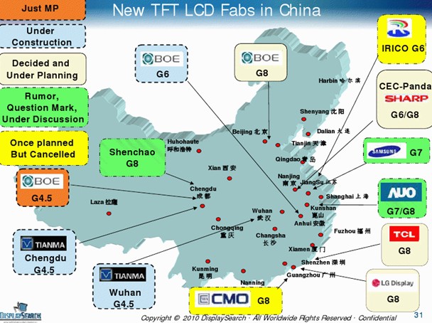 市場(chǎng)方面,隨著面板價(jià)格上揚(yáng)、終端銷售成績(jī)比預(yù)期理想、中國(guó)家電下鄉(xiāng)及以舊換新政策的實(shí)施等,整個(gè)FPD產(chǎn)業(yè)景氣似乎已然復(fù)蘇,天馬、夏普、三星、LG等廠商陸續(xù)開始在大陸建立新生產(chǎn)線或重新啟動(dòng)停產(chǎn)產(chǎn)能。