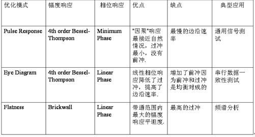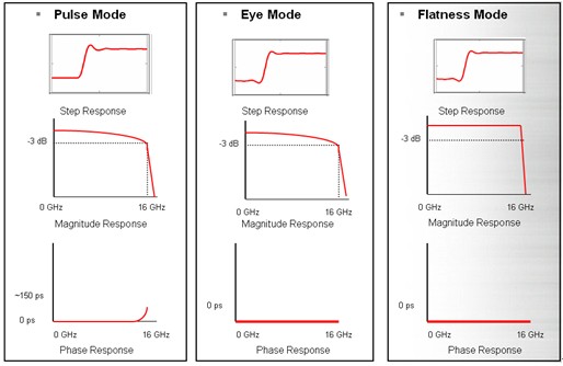 當(dāng)今的高帶寬數(shù)字示波器都會(huì)采取某種脈沖響應(yīng)優(yōu)化方式去降低幅頻響應(yīng)或相頻響應(yīng)對被測信號的負(fù)面效應(yīng),業(yè)界應(yīng)用最廣泛的脈沖響應(yīng)方式有三種,分別為Pulse Mode、Eye Mode和Flatness Mode。
