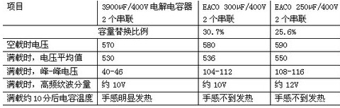 表2 EACO薄膜電容器替代鋁電解電容器測試結(jié)果