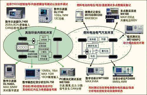 本文針對汽車研發(fā)過程中所涉及到的發(fā)動機分析、驅動分析、振動分析、環(huán)境影響、燃料電池效率分析、CAN總線分析等方面,介紹橫河電機提供的各種測試解決方案(圖1)。