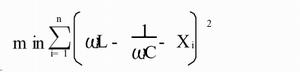 取Z的虛部(電抗)X,運(yùn)用實(shí)驗(yàn)數(shù)據(jù)處理中的最小二乘法并由(1)式知,X的擬合模型為?L-1/?C。通過一系列頻點(diǎn)?i的測試計(jì)算數(shù)據(jù)Xi(i=1,2,.,n),尋找最優(yōu)的參數(shù)L和C使得: