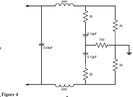 查看Figure 1中的等效電路,可以看到諧振頻率(1/(2*PI*sqrt(LC))給出)點的探頭輸入阻抗是0歐姆——完全消除了被測信號!最近一些制造商開始注意這個問題并設計具有更好輸入特性的探頭。Figure 3展示了這種探頭(Probe A)的等效電路。這是許多給出這個探頭精確依賴于尖端和地夾的等效負載模型之一。這個探頭還有一個諧振點大概是2GHz,該頻點的阻抗被電阻限制到大約165歐姆。