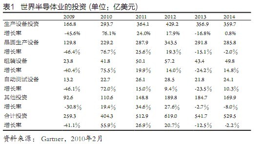 近期半導(dǎo)體業(yè)的迅猛增長(zhǎng),推動(dòng)了半導(dǎo)體生產(chǎn)設(shè)備市場(chǎng)的快速?gòu)?fù)蘇,存儲(chǔ)器、代工業(yè)的發(fā)展以及進(jìn)一步走向微細(xì)化先進(jìn)技術(shù)的要求,則是主要的拉動(dòng)力量。在各項(xiàng)生產(chǎn)設(shè)備中晶圓生產(chǎn)線(xiàn)(wafer fab)設(shè)備最為重要,增長(zhǎng)也最快,2010年將竄升76.7%,達(dá)229億美元,獨(dú)占半導(dǎo)體生產(chǎn)設(shè)備的78%,整個(gè)半導(dǎo)體業(yè)投資的近57%。組裝設(shè)備增長(zhǎng)75.5%,達(dá)41.8億美元,自動(dòng)測(cè)試設(shè)備增長(zhǎng)72%,達(dá)22.7億美元。其他有關(guān)投資增長(zhǎng)19.4%,達(dá)110.6億美元,整個(gè)半導(dǎo)體業(yè)投資共增長(zhǎng)55.9%,達(dá)到404.3億美元(表l)。