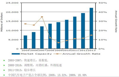 - 汽車(chē)電子,2010年—2013年將會(huì)是穩(wěn)步增長(zhǎng)期