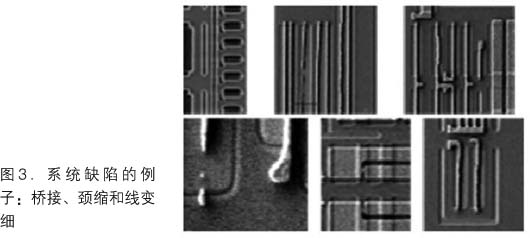 傳統(tǒng)的在線監(jiān)控策略主要關(guān)注像隨機(jī)微粒這樣的隨機(jī)缺陷。盡管檢測隨機(jī)微粒很重要,但更先進(jìn)的技術(shù)節(jié)點(diǎn)出現(xiàn)了很難檢測的系統(tǒng)缺陷(圖3)。即使檢測后,從大量缺陷計(jì)數(shù)中識(shí)別這些缺陷也頗具挑戰(zhàn)性,每晶圓50個(gè)缺陷的取樣率僅是105個(gè)缺陷數(shù)據(jù)的0.05%。隨著系統(tǒng)缺陷的增加,人們更多關(guān)注識(shí)別工藝開發(fā)早期的作圖問題以減少產(chǎn)品推出周期。