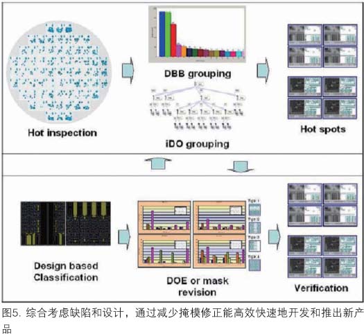 用與設(shè)計(jì)相關(guān)的檢測設(shè)置,現(xiàn)在可以產(chǎn)生更智能化的檢測菜單,注意力集中在最重要的芯片區(qū)域。這一技術(shù)已成功地在開發(fā)和生產(chǎn)工廠中進(jìn)行了試驗(yàn)。引入新方法后,缺陷識(shí)別更有效,因而能通過分析實(shí)驗(yàn)結(jié)果減少工藝開發(fā)時(shí)間(圖5)。由于能方便地監(jiān)控關(guān)鍵結(jié)構(gòu),就可以評(píng)估每一組實(shí)驗(yàn),以便選擇刻印圖形結(jié)果最好的工藝條件。