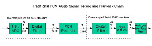 DSD的關(guān)鍵優(yōu)勢是理論上更簡單的信號鏈。位流直接記錄到光盤介質(zhì)上,這可消除實現(xiàn)昂貴的數(shù)字濾波器的必要性。不過,對于準備采用DSD的音樂業(yè)界來說,它們必須購買新的設(shè)備。現(xiàn)有的混音臺、錄音控制臺和數(shù)字錄音機現(xiàn)在都不支持PCM。