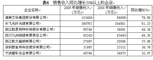 由于2009年受到金融危機(jī)的打擊,許多元件百強(qiáng)企業(yè)的生產(chǎn)經(jīng)營(yíng)受到極大影響。僅有35家企業(yè)的銷售收入增長(zhǎng)超過10%,比上屆的41家還少,更遠(yuǎn)低于第21屆時(shí)的65家。僅有湖南艾華集團(tuán)股份有限公司、長(zhǎng)飛光纖光纜有限公司兩家企業(yè)的09年銷售收入同比增幅超過50%,分別增長(zhǎng)了75.55%和51.23%。而上一屆,銷售收入同比增幅超過50%的企業(yè)仍有7家。值得一提的是四川九洲線纜有限責(zé)任公司,2008年的銷售收入增長(zhǎng)110.16%,2009年的銷售收入再次增長(zhǎng)45.30%,兩年間的平均增長(zhǎng)率達(dá)到74.75%,獲得如此驚人的發(fā)展速度十分難得。