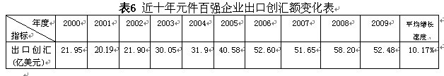 本屆元件百強(qiáng)企業(yè)中,97家企業(yè)有出口業(yè)務(wù),其中53家企業(yè)的出口下滑,有15家企業(yè)的出口下降程度在30%以上。出口總額超過1000萬美元的企業(yè)達(dá)到68家,比上屆少1家;出口總額超過5000萬美元的企業(yè)有25家,也比上屆少1家。但是,有16家企業(yè)2009年的出口額超過了1億美元,比上屆多1家。