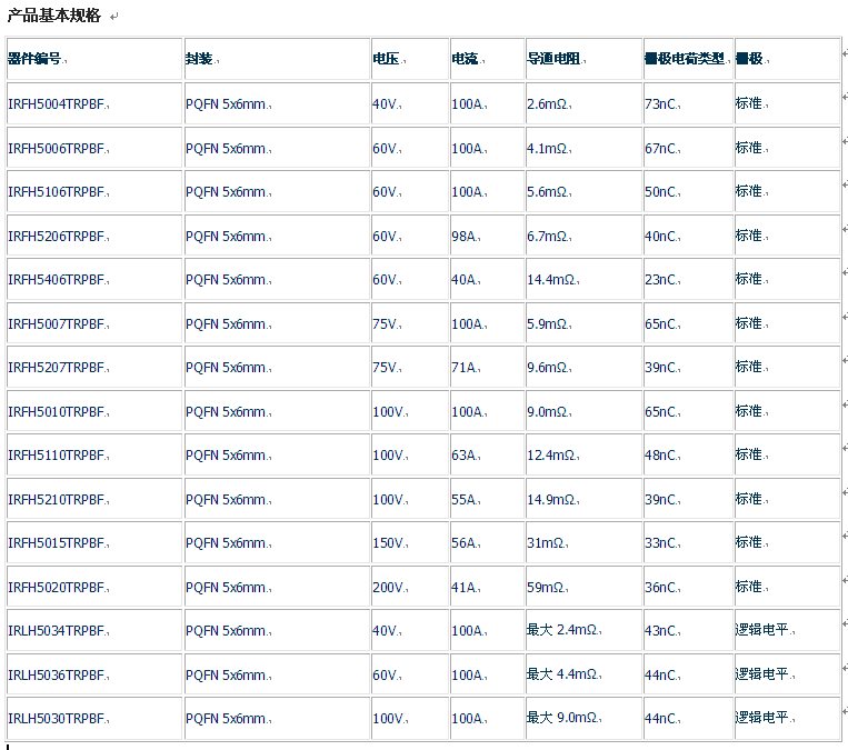 新的功率MOSFET采用了IR最新的硅技術(shù)來實現(xiàn)基準(zhǔn)性能,適用于網(wǎng)絡(luò)和電信設(shè)備的DC-DC轉(zhuǎn)換器、AC-DC開關(guān)電源(SMPS)及電機(jī)驅(qū)動開關(guān)等開關(guān)應(yīng)用。由于新器件滿足40V到250V的寬泛電壓,所以可提供不同水平的導(dǎo)通電阻(RDS(on))和柵極電荷(Qg),為客戶的特定應(yīng)用提供優(yōu)化的性能和更低成本。