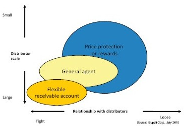 在第二種策略中,擁有廣泛產(chǎn)品線的原廠可以在某一個(gè)或幾個(gè)產(chǎn)品市場中執(zhí)行總代理的管理體系。雖然總代理不一定創(chuàng)造非常大的總體銷售額,但可能在其各自的產(chǎn)品領(lǐng)域中充當(dāng)領(lǐng)跑者,并建立健康的渠道庫存。