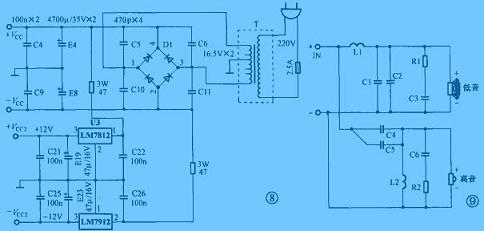 電源變壓器采用輸出電壓為16.5V×2的黑白電視機電源變壓器,電源電路如圖8所示。