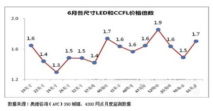 圖4 6月份各尺寸LED與CCFL價格倍數(shù)關(guān)系 [page]