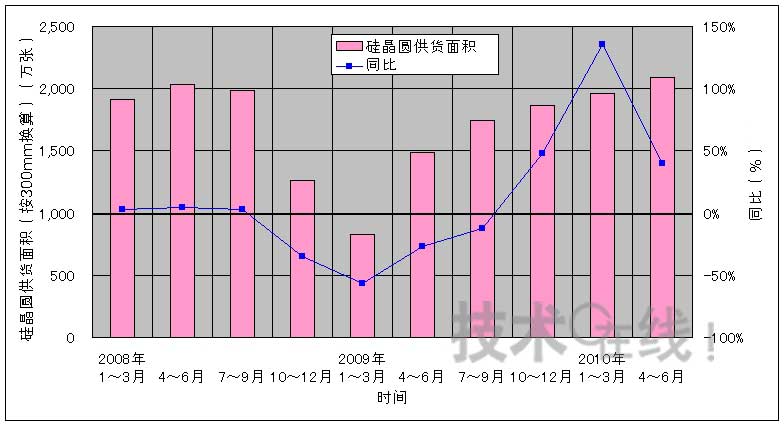 國(guó)際半導(dǎo)體制造設(shè)備材料協(xié)會(huì)(SEMI)公布了2010年第二季度(2010年4~6月)的全球半導(dǎo)體用硅(Si)晶圓供貨業(yè)績(jī)。發(fā)布資料顯示,硅晶圓供貨面積在2009年第一季度(2009年1~3月)觸底后連續(xù)五個(gè)月增加,突破了2000萬(wàn)片(按300mm晶圓換算,下同)大關(guān)。超過(guò)了此前的歷史最高記錄——2008年第二季度(2008年4~6月)的1946萬(wàn)片,刷新了歷史記錄。