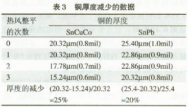 在通過(guò)第一次的時(shí)候,無(wú)鉛化合金比起SnPb37焊料除去的銅要少。同樣,當(dāng)通過(guò)第二次的時(shí)候,僅有12.5%和10%被移除,在經(jīng)歷第三次的時(shí)候僅有25%和20%的銅被移除(表3)。